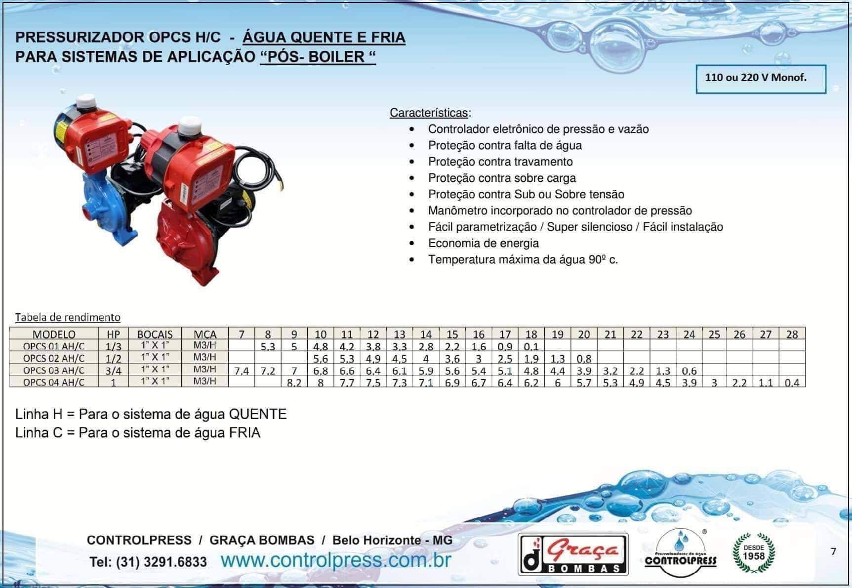 O Pressurizador OPCS H/C - Água Quente e Fria (Pós-Boiler) é a solução perfeita para quem busca pressão constante, eficiência e silêncio absoluto em sistemas de aquecimento e distribuição de água. Desenvolvido pela Controlpress e comercializado pela Graça Bombas, referência em soluções hidráulicas em Belo Horizonte e região, o OPCS H/C foi projetado para oferecer alto desempenho e durabilidade em aplicações residenciais e comerciais.